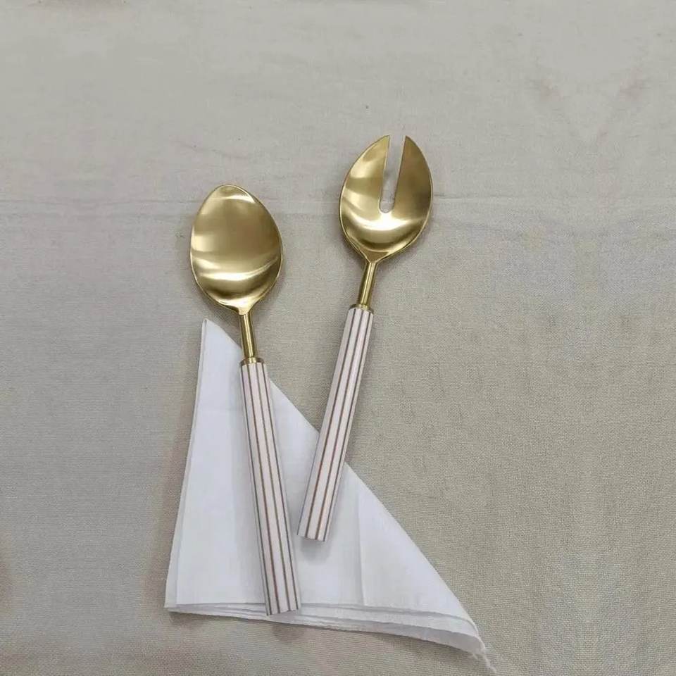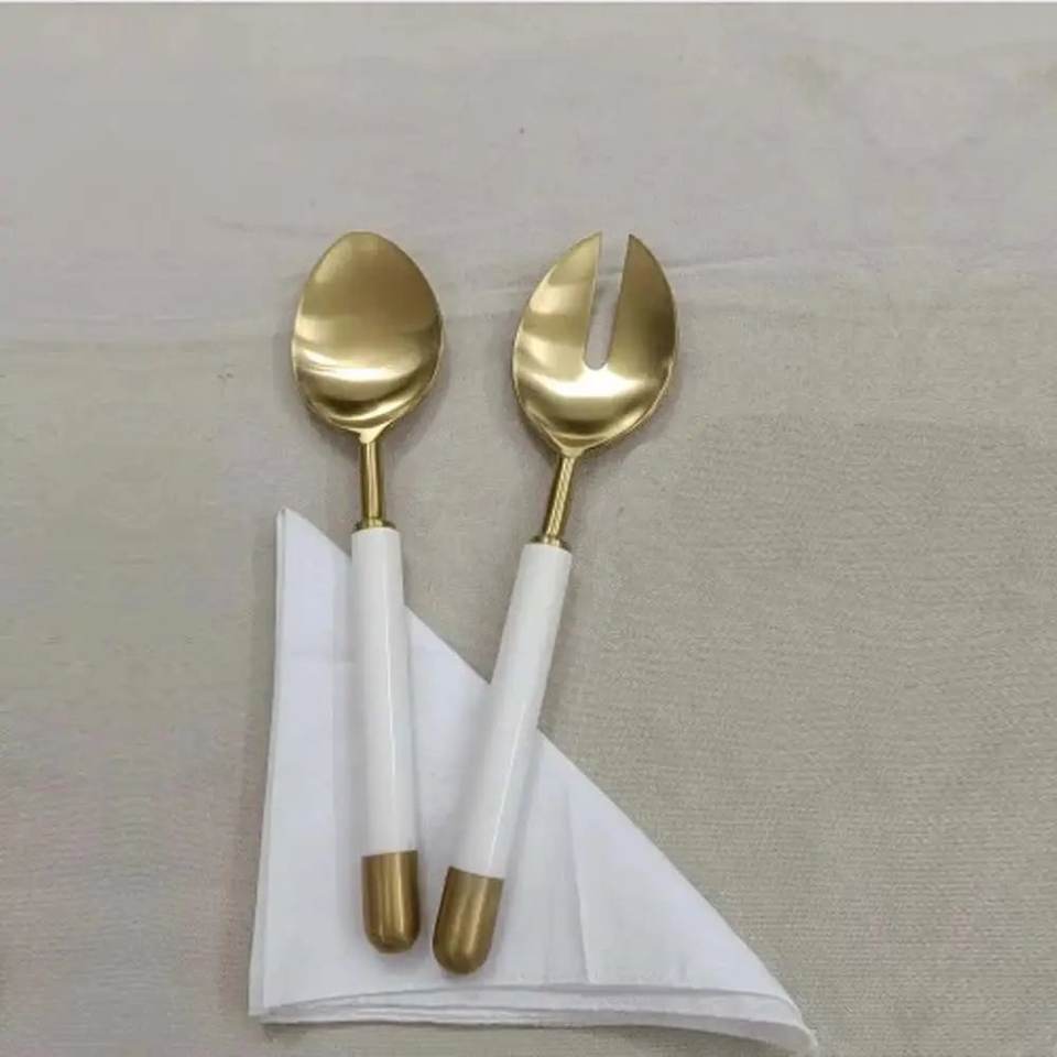 Wholesaler Stainless Steel Gold Salad Server Serving Spoon Fork Modern Luxury Style Dishwasher Safe for Wedding Tabletop Use
