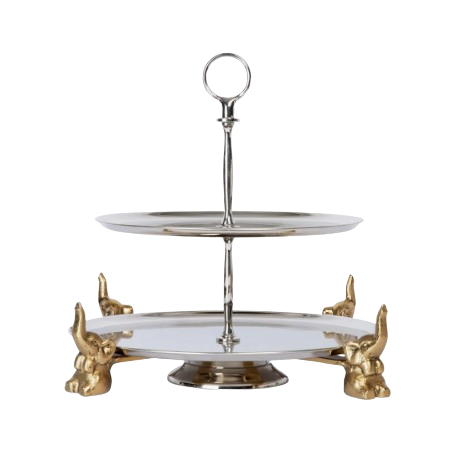 Wholesaler Silver Glossy Finished Tabletop Decorative Two Tier New Arrival Metal Stylish Cake Stand for Home Hotel Parties