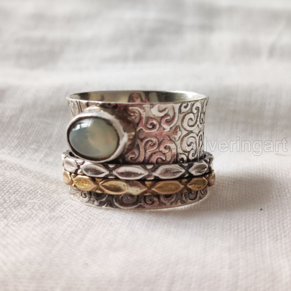 Wholesaler Womans Band Natural Opal Spinner Band Gemstone October Birthstone Ring Huge Handmade Jewelry 925 Sterling Silver Ring