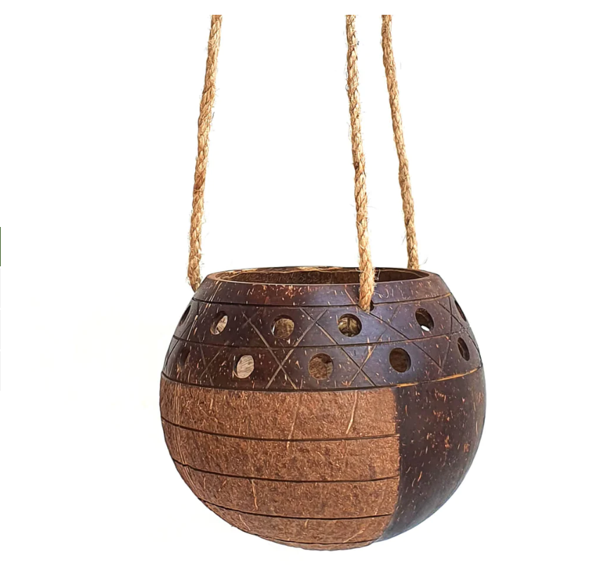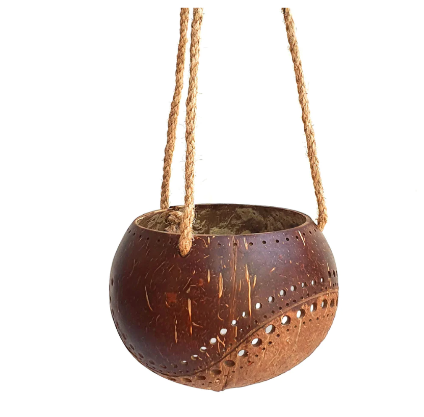 Wholesaler Cheap Eco-friendly Unpolished Vintage Coconut Hanger Planter Pot for Garden Packaging ODM Made in Vietnam