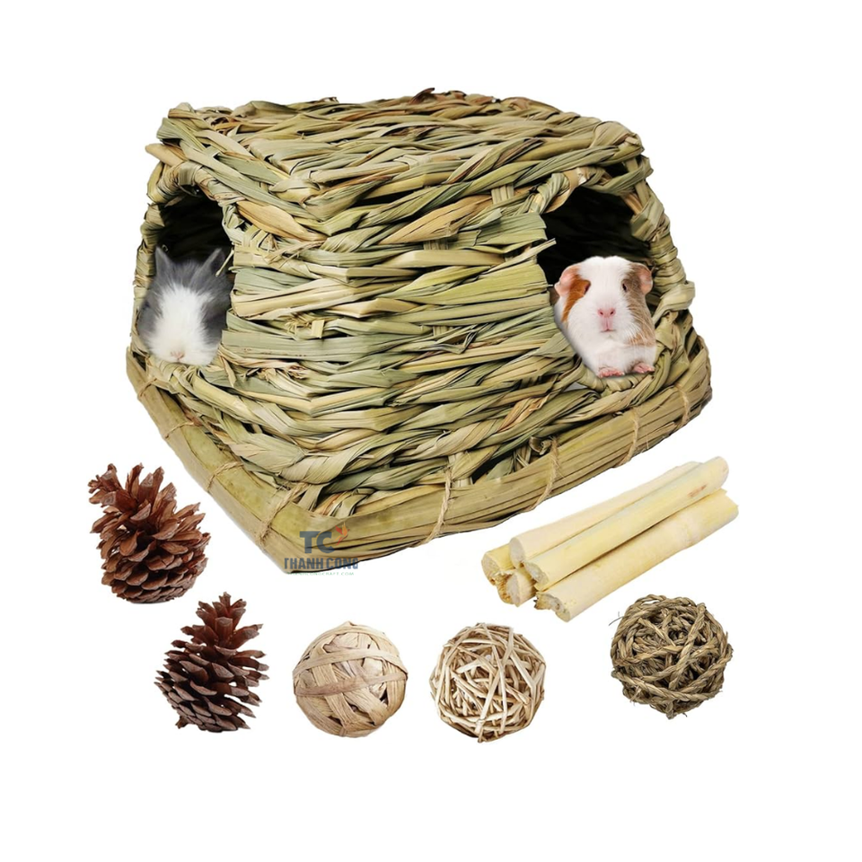Wholesales Bunny Grass House Grass Rabbit Cage Rabbit Nest Straw Woven Pet House Chinchilla Hamster Hedgehog Nest