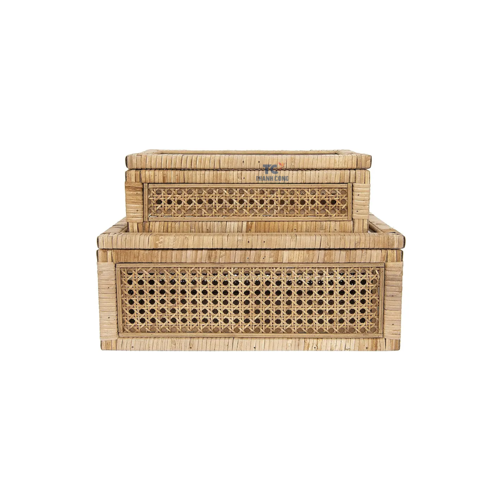 Wholesales Cane and Rattan Display Box Storage Box Rattan Vintage Woven Rattan Storage Boxes With Glass Lid