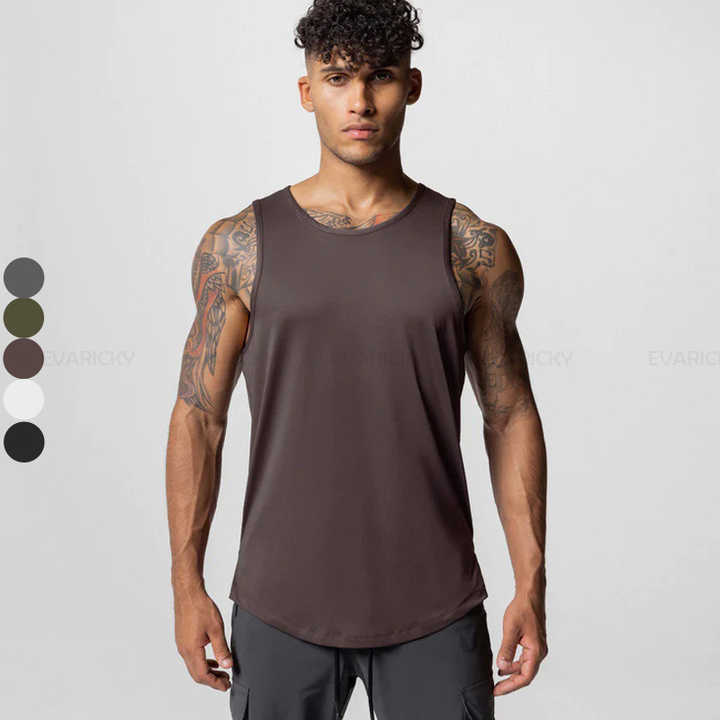 Wholesales Color Customized Logo Men Rib Fabric Spandex Cotton Collar Casual Singlets Men Vest O Neck Men Tank Top