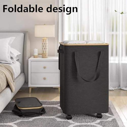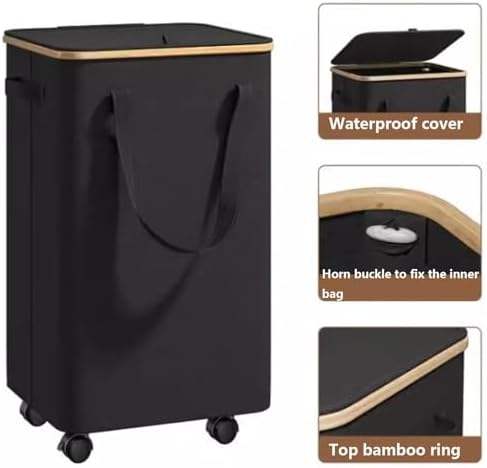 Wholesales Custom Logo Large Capacity Oxford Canvas Bamboo Ring Capacity Basket Collapsible Laundry Baskets With Wheels
