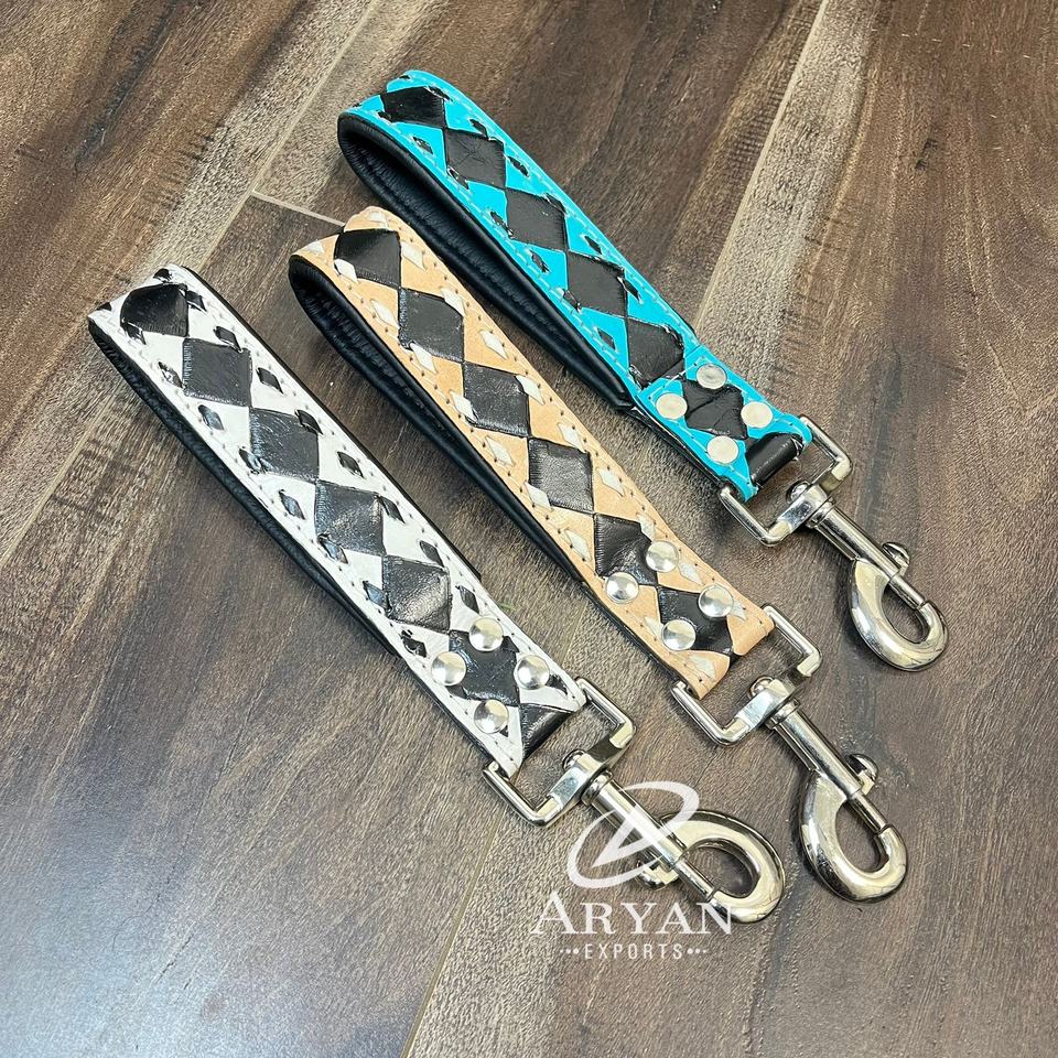 Wholesales Durable Heavy Duty Genuine Tooled Leather Fashion Black & White Check Lead Pets Training Dogs Lead With Metal Buckle