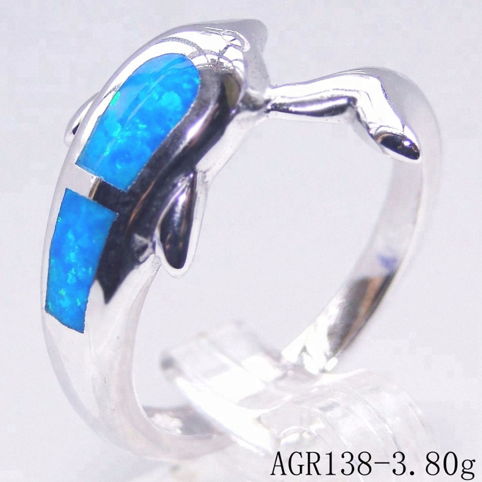 Wholesales Fashion Animal Jewelry Blue Opal Silver Dolphin Ring