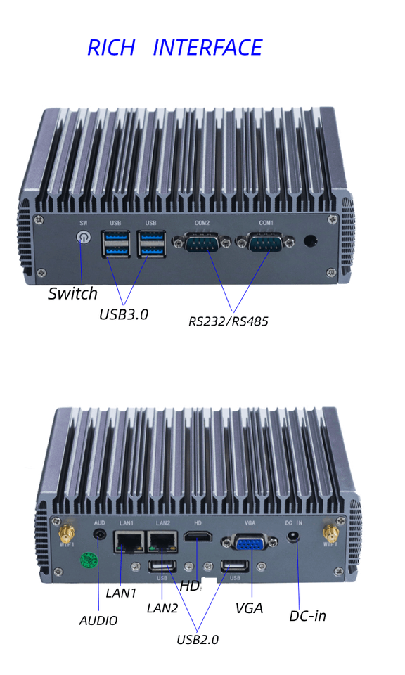 Wholesales Hot Sale I3 2 Lan Port I5 6200U I7 7500U i3 7100U Industrial Pc 6*USB 2*COM Mini Computer