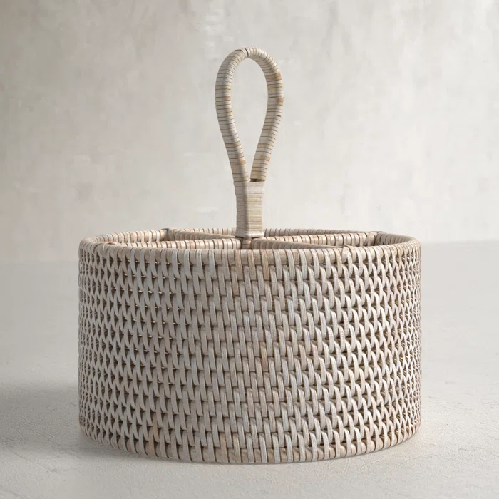 Wholesale Round 4-Section White Washed Rattan Caddy Cutlery Holder Handwoven Kitchen Organizer Storage Set