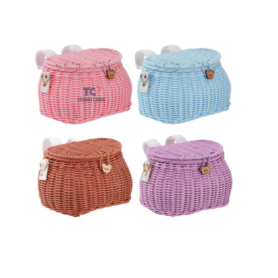 Wholesales Vietnam Colorful Rattan Bag With Leather Handle HandBag for Kids Rattan Shoulder Bag Eco Friendly