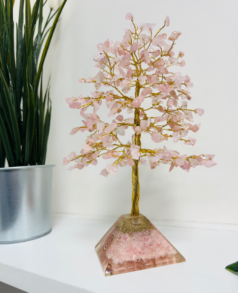 Product name:Rose Quartz tree with orgone pyramid base