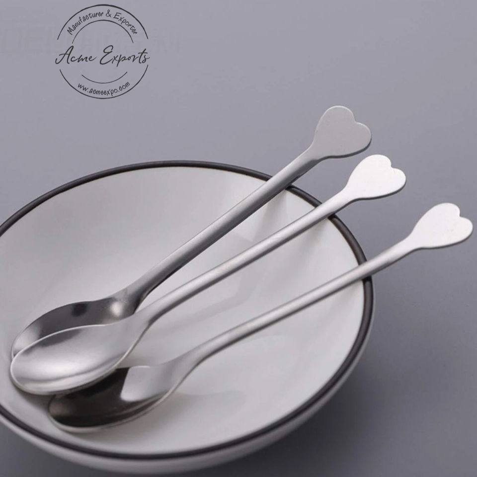 Elegant Stainless Steel Dessert Spoon with Heart Shaped Handle Perfect for Serving Sweets and Treats
