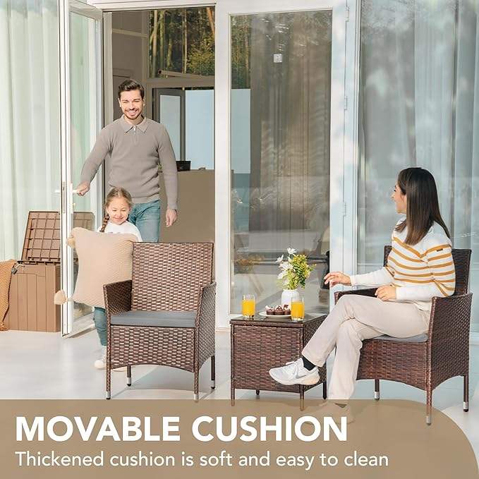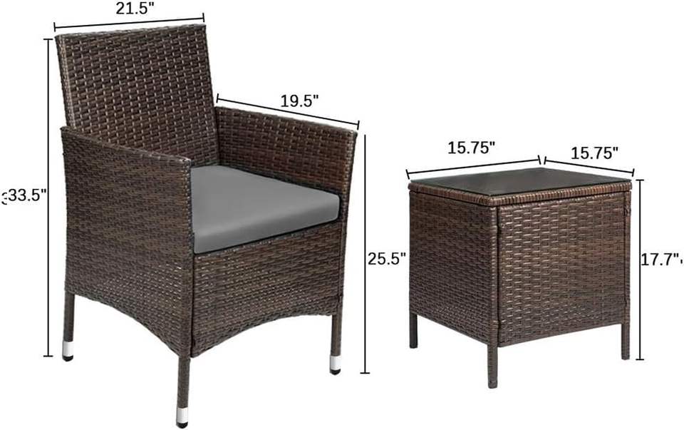 Wicker Armchairs with Coffee Table Rattan Set Patio Furniture Outdoor Dining Chair Garden Bistro Set for Home