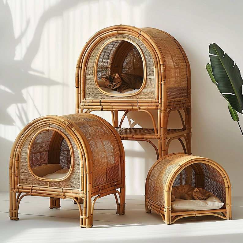 Wicker Pet Bed Basket; Rattan Cat/dog Nest; Rattan Pet House Cage Woven Wicker Pet Bed