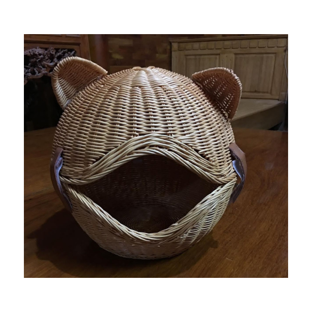 Wicker Pet Bed Handmade Rattan Basket Nest for Dog Cat Natural Sleeping House Soft Pillow Furniture for Indoor Pets