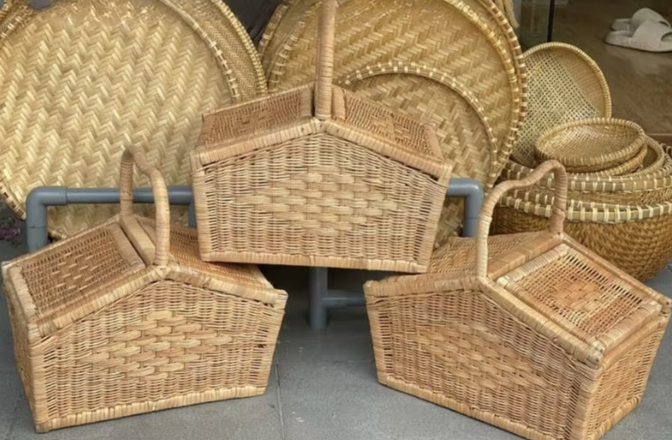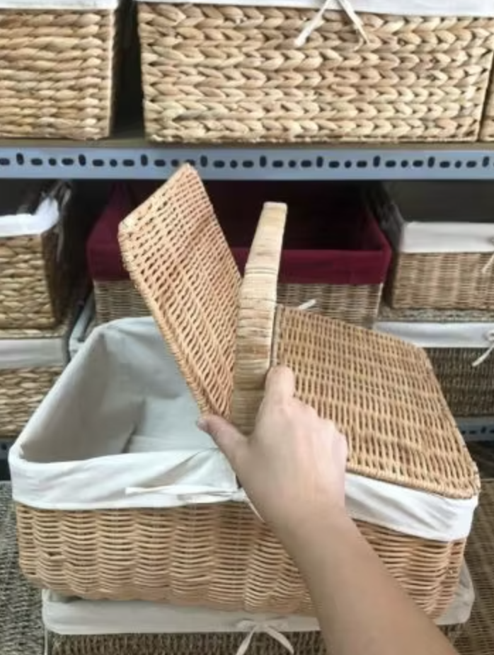 Wicker Rattan Basket for Picnic Cotton Rope Storage by Blue Lotus Viet Nam