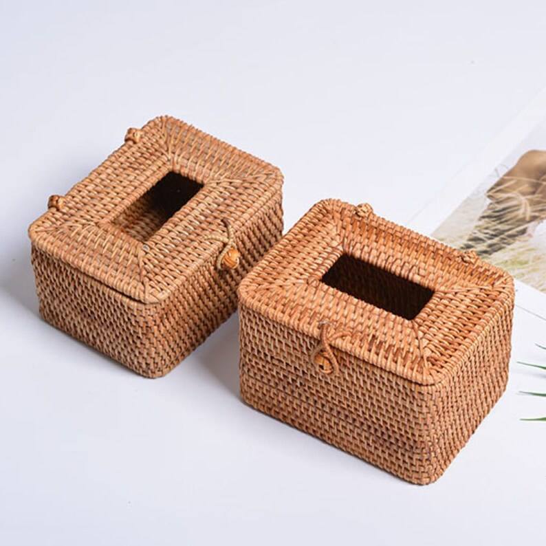 Wicker Rattan Tissue Box Rectangle Rattan Storage Basket From Vietnam