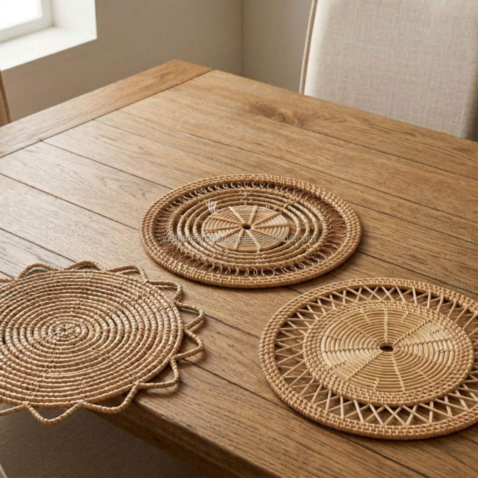 Wicker Round Placemat Kitchen Accessory, Handmade Rattan Placemats, Custom Woven Table Decor