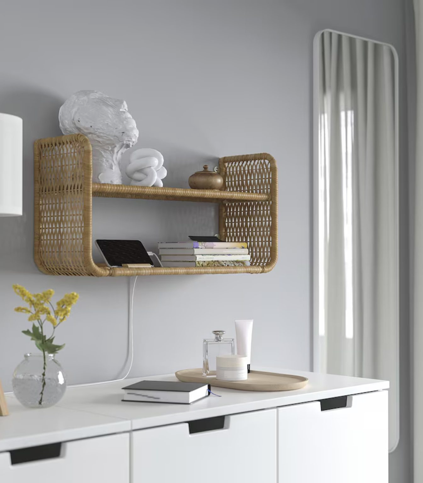 Wicker wall shelf:Size: L23,6 x W7,9 x H11,8 inch