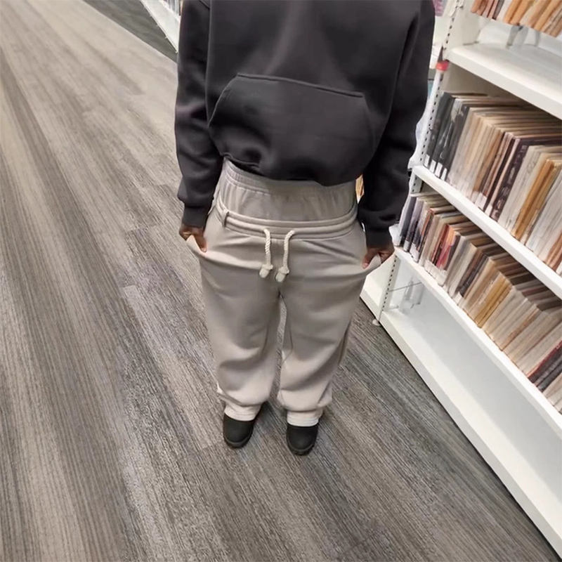 Wide Leg Baggy Pants Double Waist Waterproof Cotton Stacked Plus Size Men's pants Oversized Black Essentials Flared Sweatpants