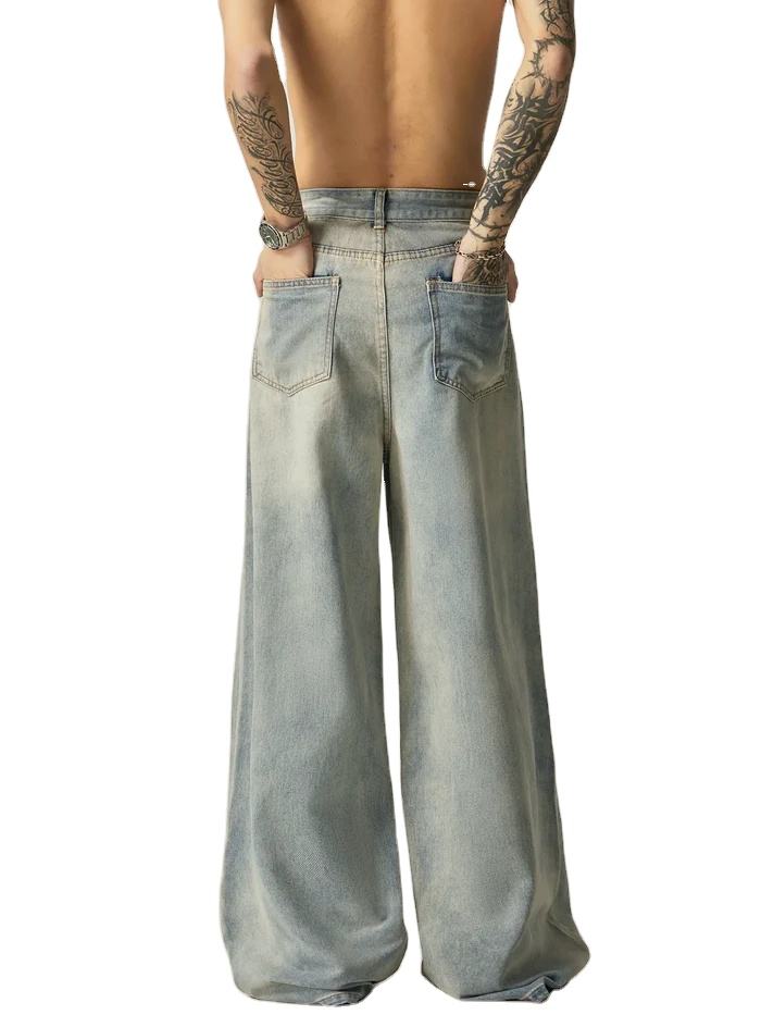 Wide-Leg Vintage Wash Carpenter-Style Jeans Sale Price & Oversize Vintage Fit Pant with Mid Waist Faded Black-Plus Size