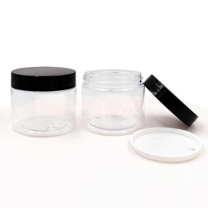 Wide Mouth 8oz Plastic Jar with Black Lid Empty Cosmetics Cream Containers 100ml 120ml 150ml 200ml 250ml Food Grade Plastic Jar