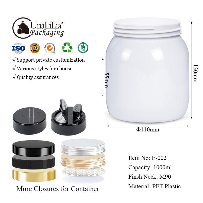 Wide Mouth Jar Custom Packaging Container Factory Wholesale Screw Lid OEM Service Food Grade PET Plastic 1000ML Unalilia JW-002