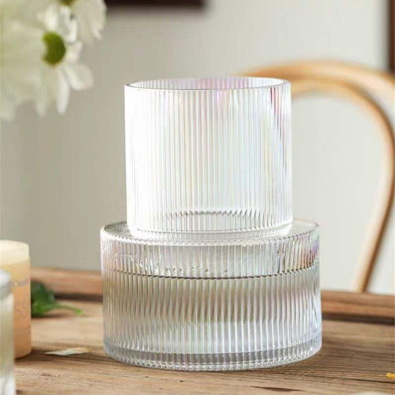 Moissic Wide-Mouth Square Glass Vase Vertical Pattern Tabletop Ornament Flower Arrangements Water Nourishing Desktop Y-9-5