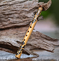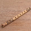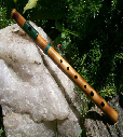 Wide diameter professional bass bamboo flute with red and black accent rings, producing deep resonant tones