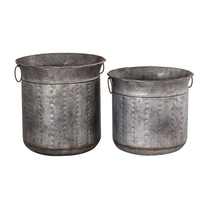 Wide mouth galvanized planter with decorative edge used in farmhouse garden areas and stylish plant container sets