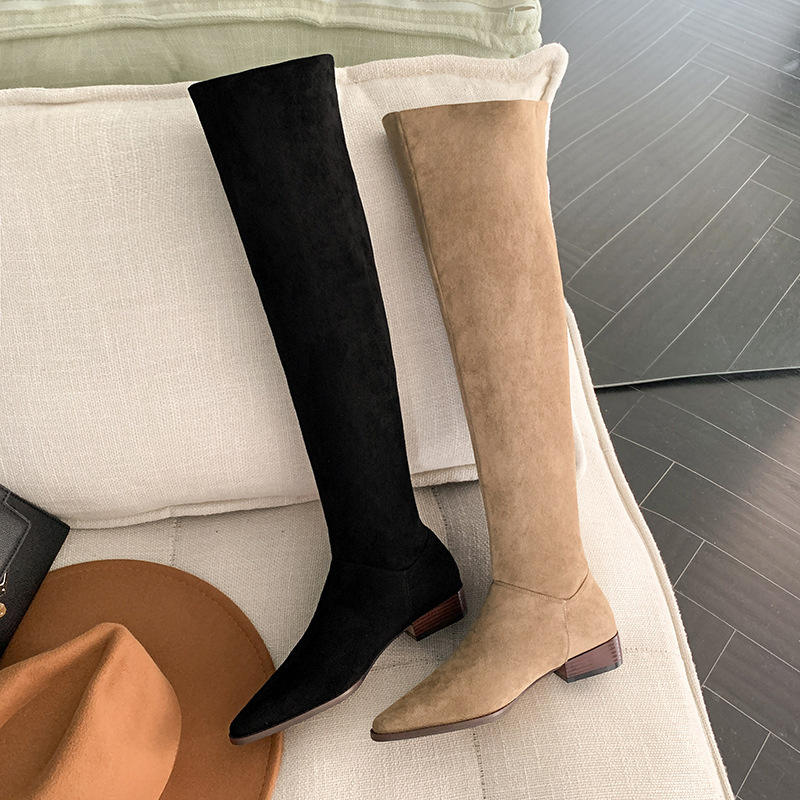 Wide-tube Long Boots Suede square Toe Mid-heel Women's High Boots Knee High Boots