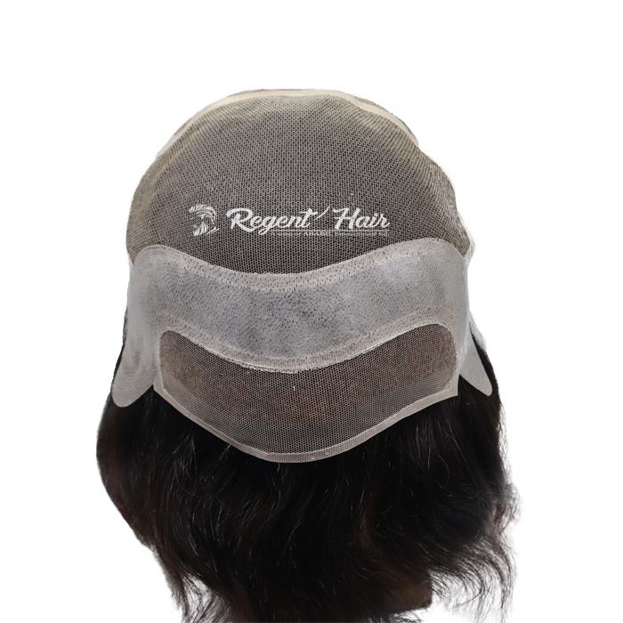 Men's Tight Pin Front Human Hair Toupee Right Design French Lace Base with PU Skin Hand Tied Technique Model Number Men's Wig