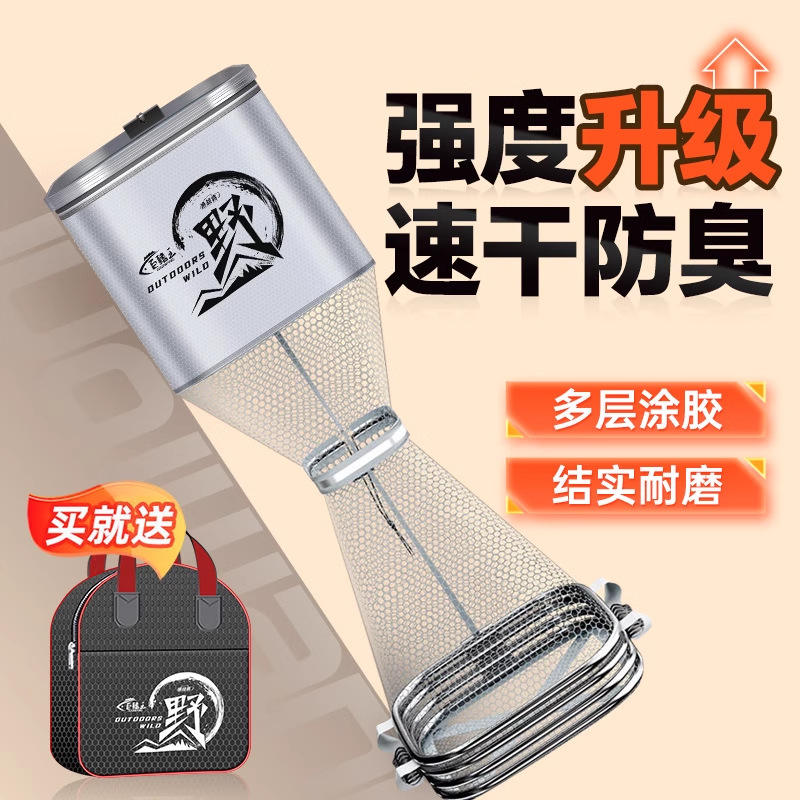 Wild Outdoor Keep Net Aluminum Alloy Nylon Mesh Portable Quick Dry Fishing Net With Carry Bag