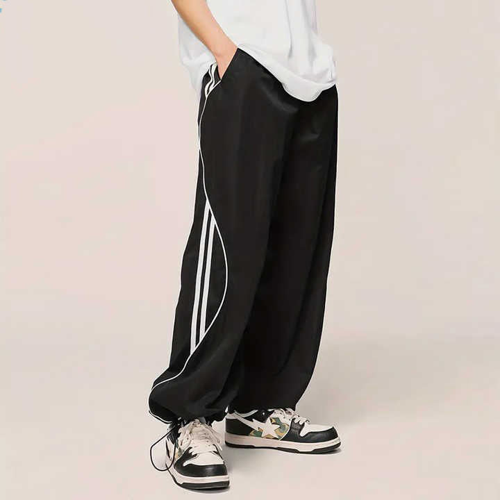 Windbreak Nylon Vintage Pants Sport Straight Baggy Parachute Pants Trouser Piping Men's Loose Striped Baggy Track Pants Men