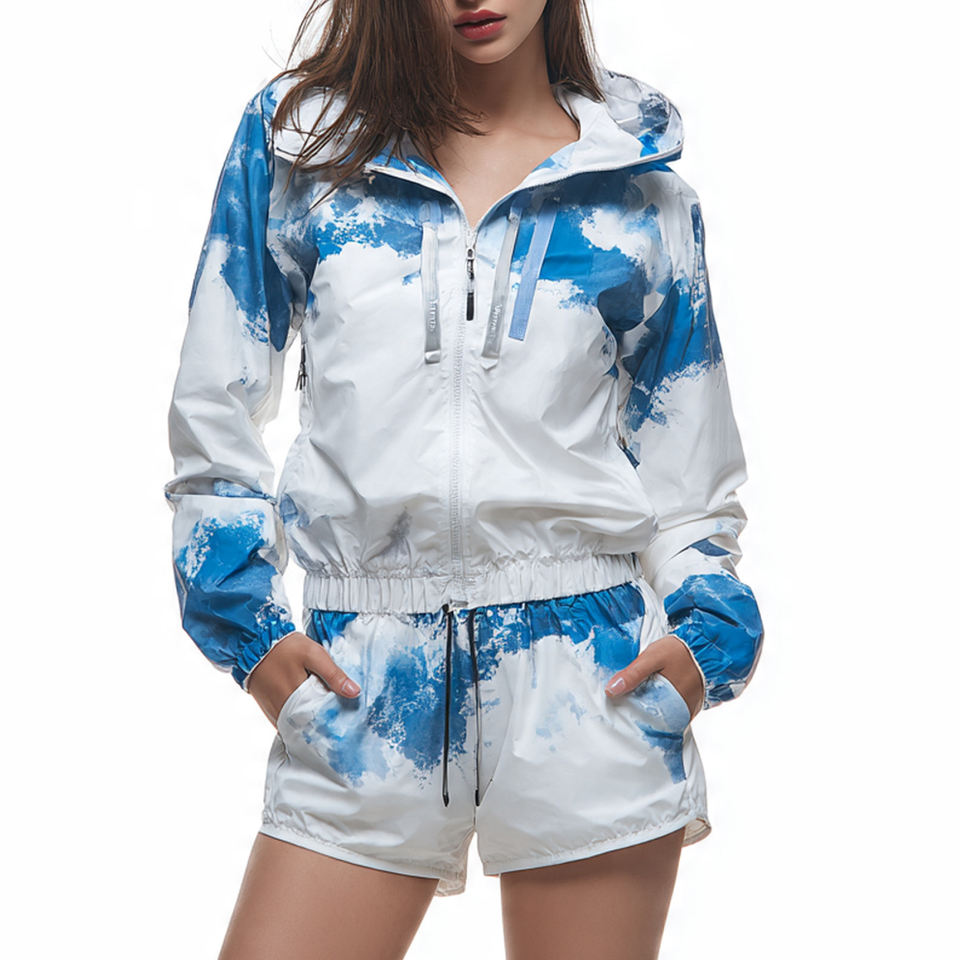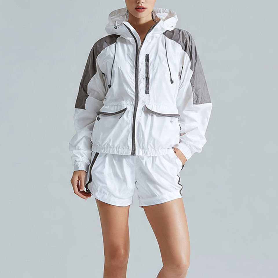 Windbreaker Haf Zip Shorts 2 Piece Set Women Crop Rain Jacket Top Waterproof Shorts Women's Mountain Wind breaker Suit Ladies