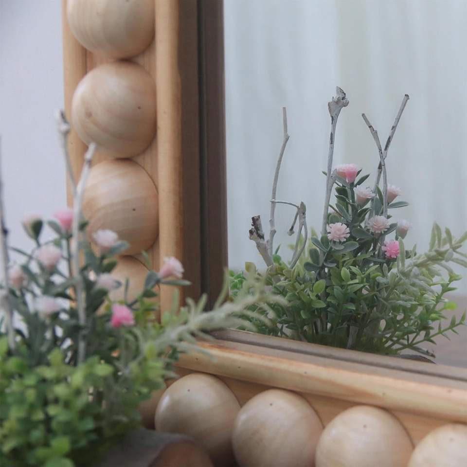 Window-Like Wood Wall Mounted Mirror with Wooden Beads Edges,Arched Decorative Bathroom Mirror or Living Room Mirror,27.5" W x 2