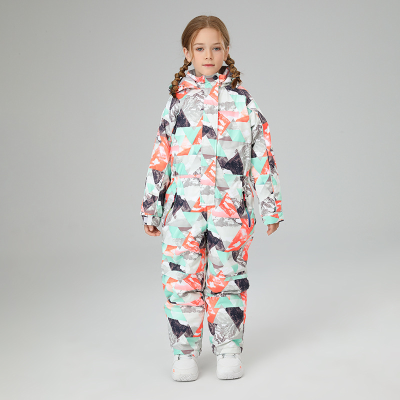 Windproof Warm One-Piece Ski Suit Set for Boys Girls Children's XL Printed Zipper Heated Jacket Pants Outdoor Ski Gear
