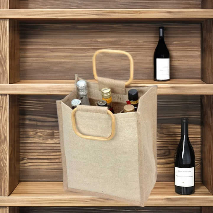 Wine 6 bottle bags made of jute with cotton handle customizable bags for gifting & packing