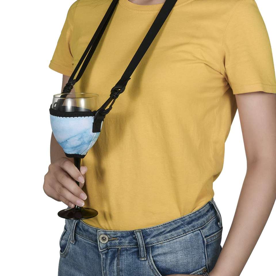 Wine Glass Insulator Drink Holder Neoprene Sleeve with Adjustable Neck Strap for Wine Walk