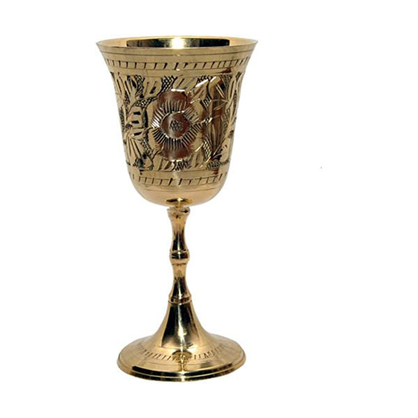 Wine Goblet Metal Brass Embossed Design Luxury Wine Goblet Leaf & Flower Design Luxury Wine Goblet