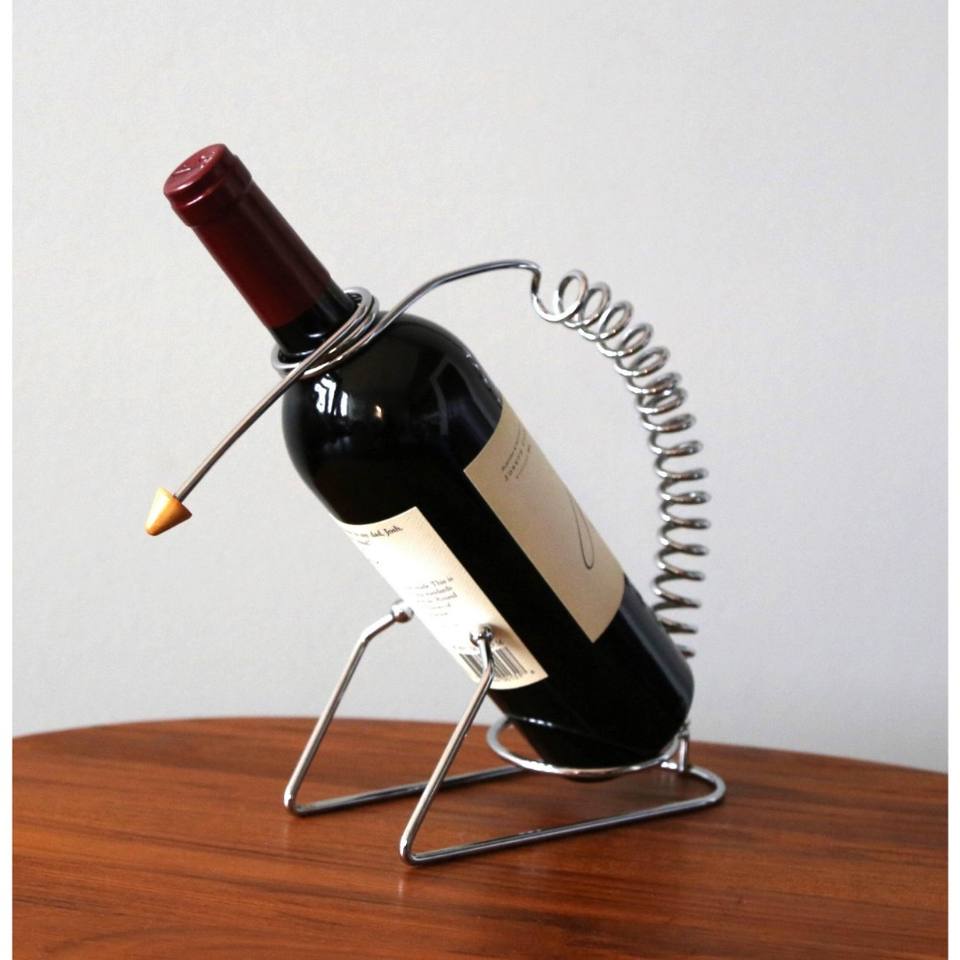 Wine Holder Vintage Stainless Steel 1980s Bottle Holder Mid Century Barware Wine Pourer Post Modern