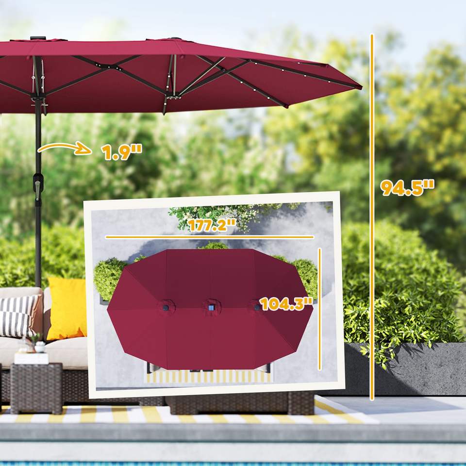 Wine Red Double-Sided Garden Parasol with LED Solar Lights Outdoor Patio Sun Umbrella
