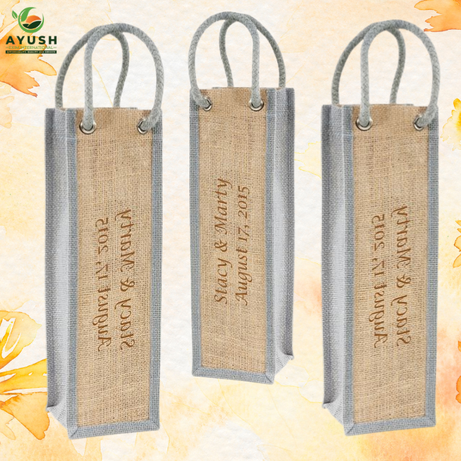Wine bottle gift bags made of jute & cotton customizable wine bags for wine shop & markets