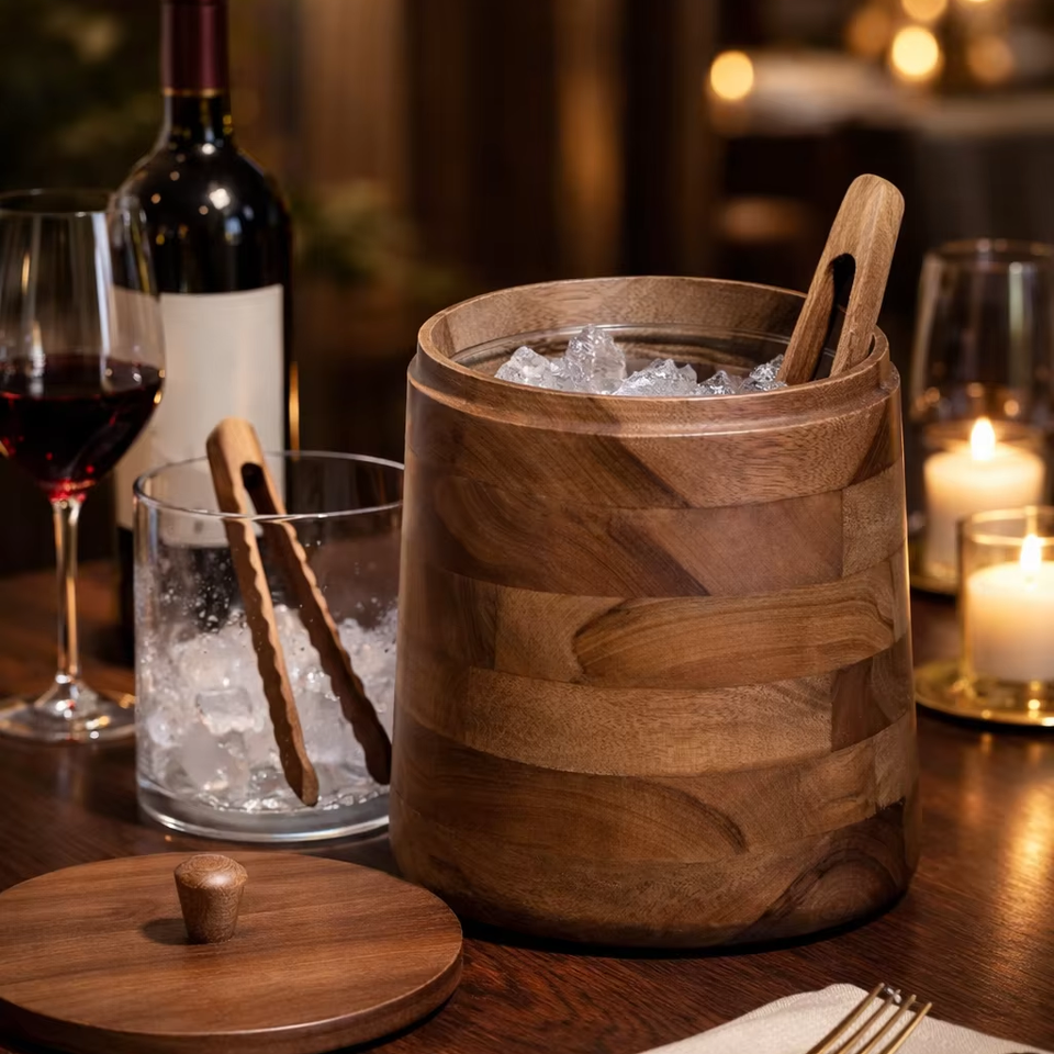 Wine bottle ice container Rustic wood wine cooler Premium wooden beverage cooler Handcrafted wooden ice bucket Wine serving ice