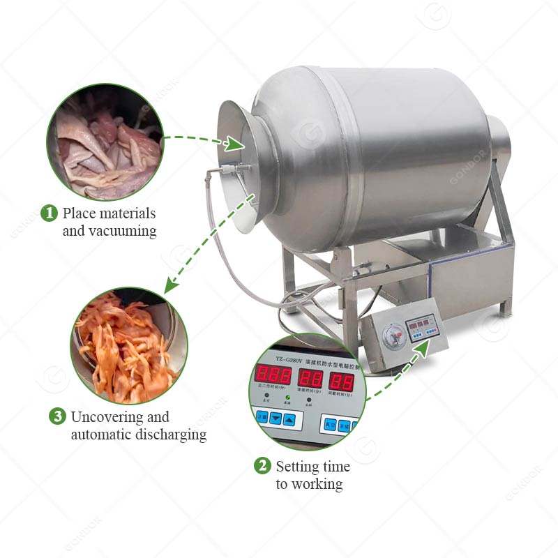 Wing Beef Jerky Tumbler Roll Knead Big Poulet Chicken Vaccum Vacuum Marinator Marinate Machine Tilt