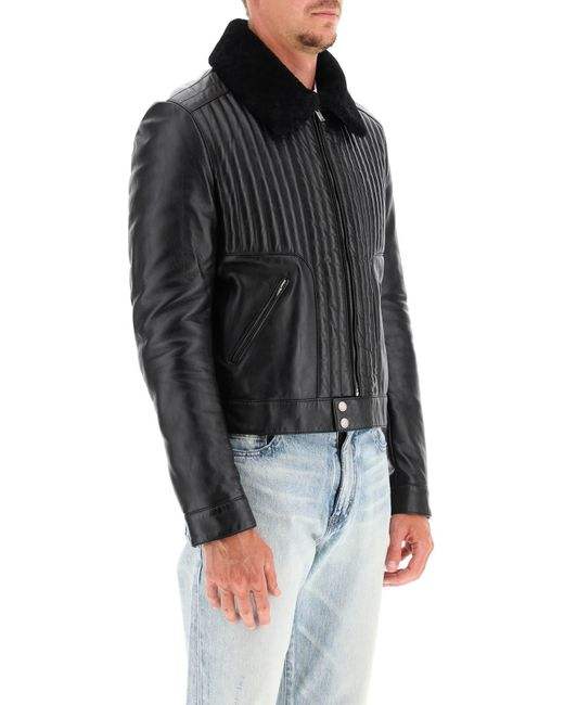 Wings Traders Men's Quilted Leather Jacket with Sheep Shearling Collar Plus Size Winter Breathable Zipper Closure