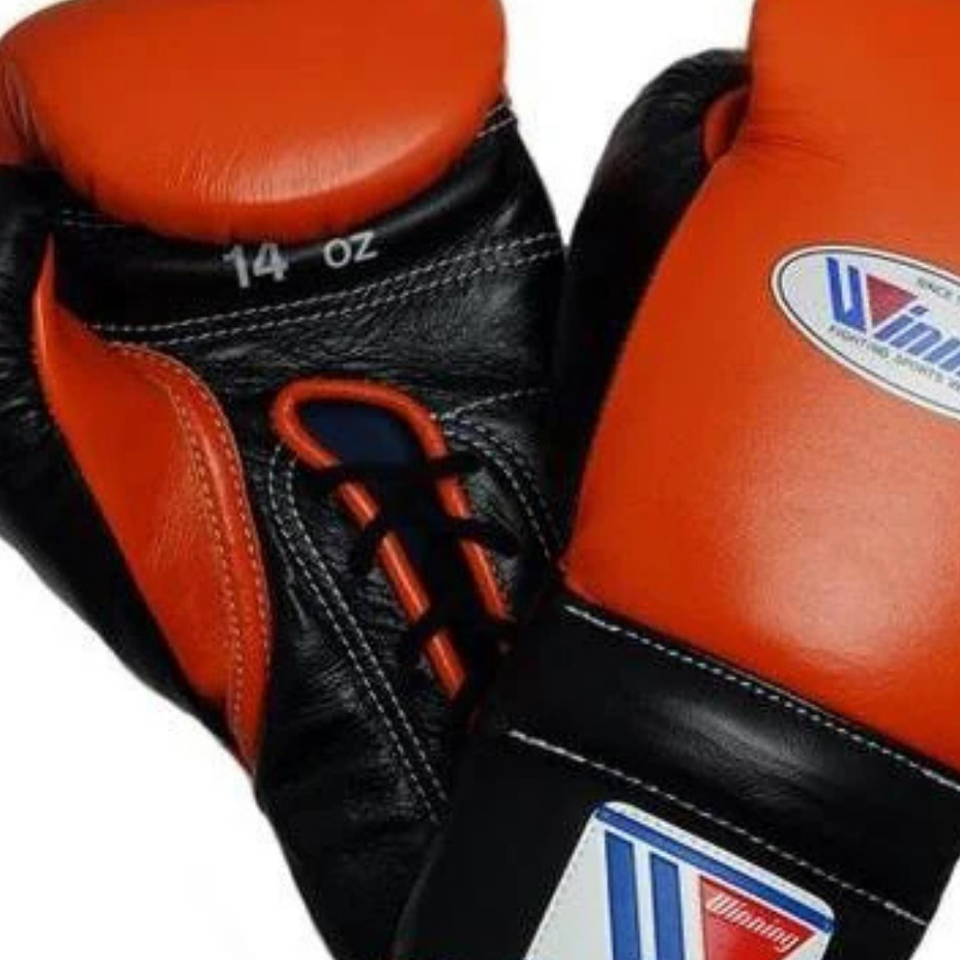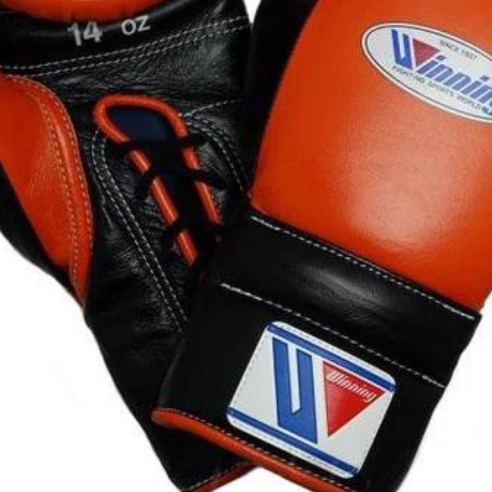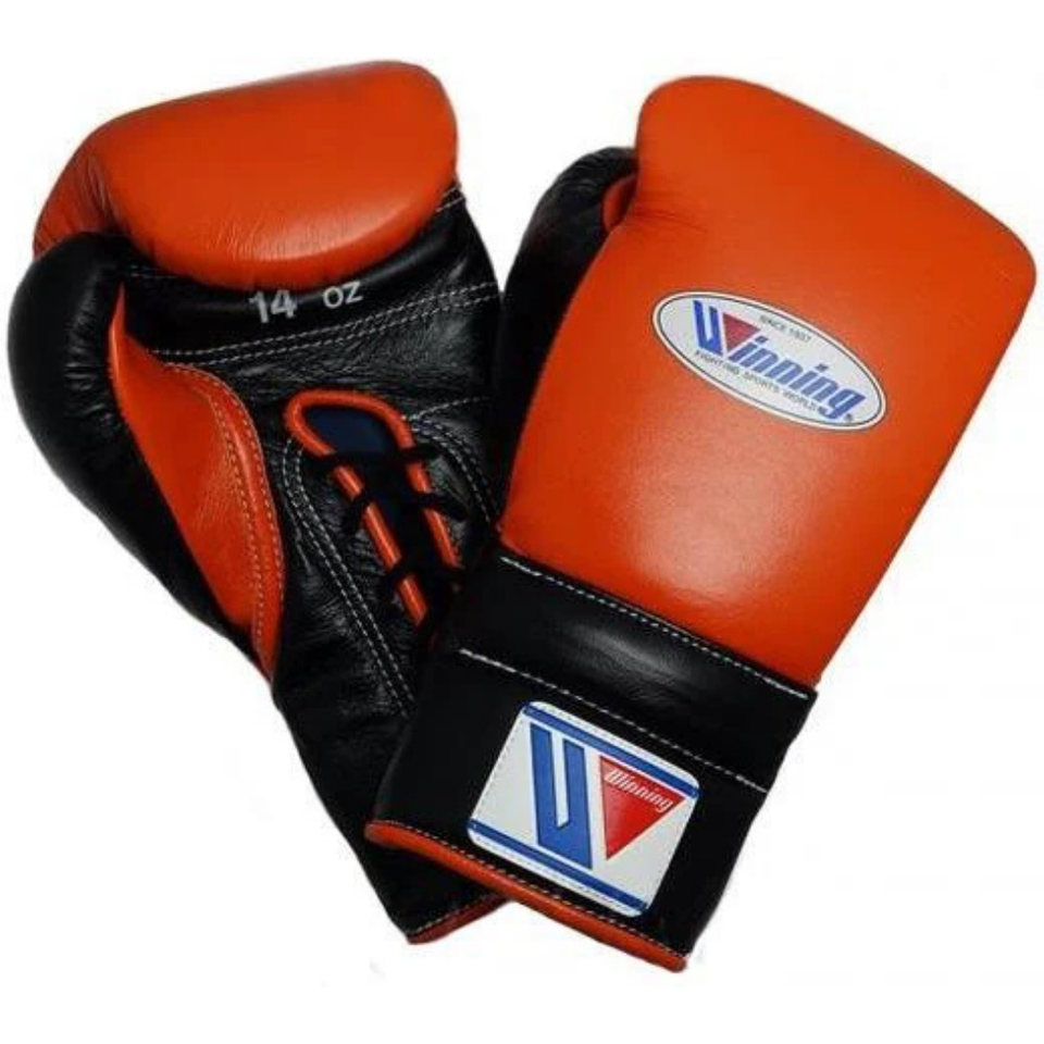 Winning Lace Up Boxing Gloves Orange Black Premium Genuine Leather Pro Boxing Training Sparring Gloves 8oz 10oz 12oz 14oz 16oz