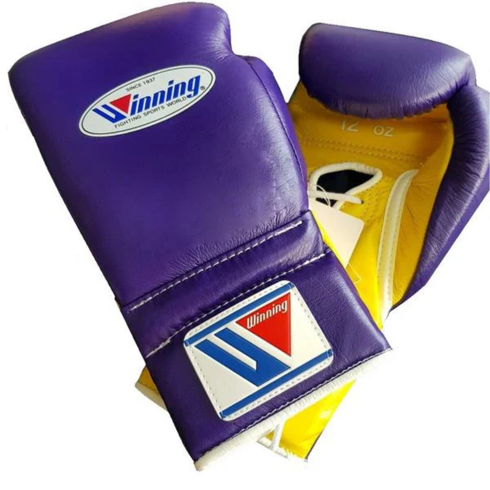 Winning Lace Up Boxing Gloves Purple Yellow Premium Genuine Leather Professional Boxing Training Sparring Gloves 8oz 16oz