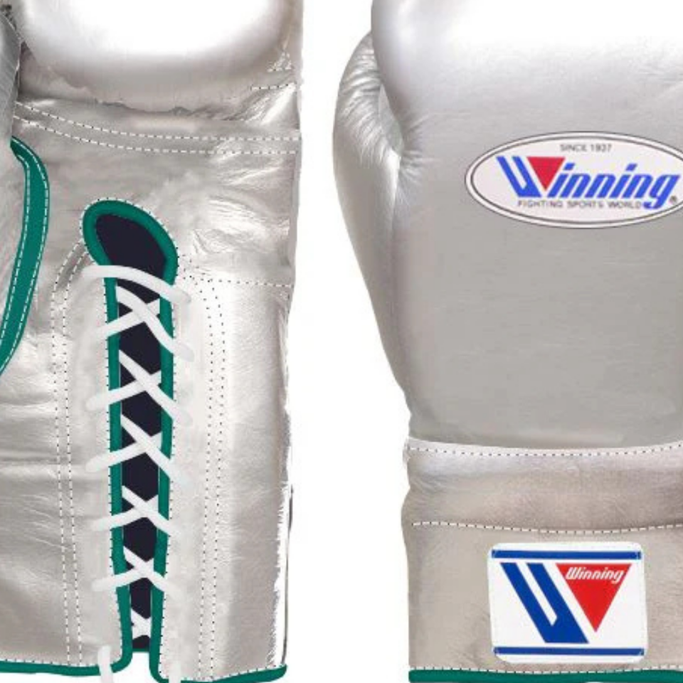 Winning Lace Up Boxing Gloves Silver Green Premium Genuine Leather Professional Fight Training Sparring Gloves 8oz 10oz 12oz 14o