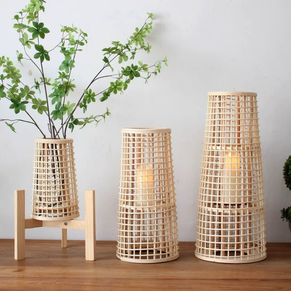 Winter 2025 Handicraft Antique Candle Holder Handmade VietNam Wholesale Wicker Lantern Rattan Home Floor Lamp Decoration