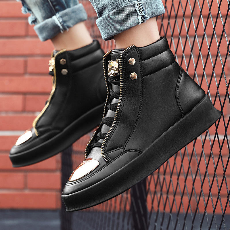 Winter Autumn Men's Korean Punk Style Metal Zipper Comfort Casual High-top Board Shoes Thick-soled Rubber Outsole